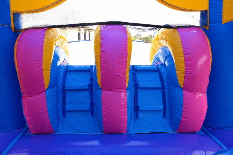 - OCCUPANCY: A maximum of 5-6 kids of equal size at one time for bounce houses, and 1 person at a time for slides is what most inflatable manufacturers recommend.