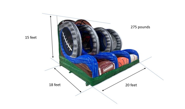 - OCCUPANCY: A maximum of 5-6 kids of equal size at one time for bounce houses, and 1 person at a time for slides is what most inflatable manufacturers recommend.