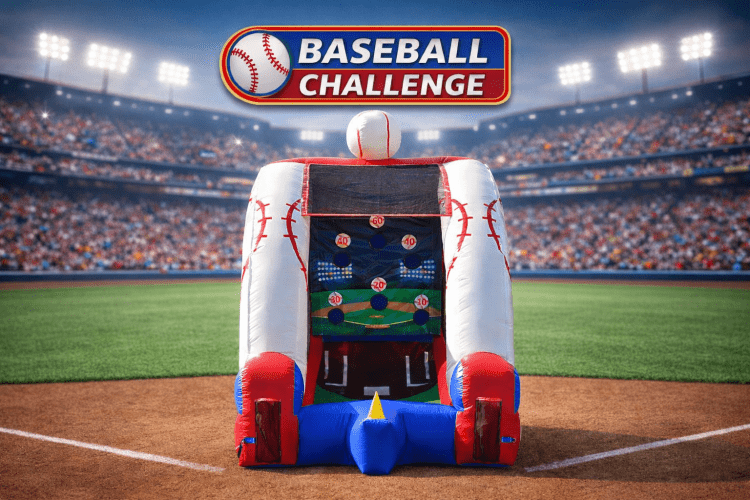 Step up to the plate and experience the thrill of America's favorite pastime with our Baseball Challenge Game for rent. Perfect for parties, corporate events, carnivals, and more, this engaging game offers fun for all ages. Players can test their batting skills as they aim to hit targets and score points. The Baseball Challenge Game is easy to set up and includes all necessary equipment, ensuring a hassle-free experience. Whether you're hosting a backyard BBQ or a large-scale event, this game is sure to be a home run! Book now to add a competitive edge and loads of fun to your next gathering.