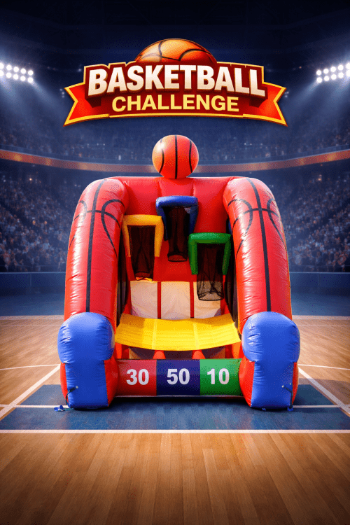 Experience the thrill of the court with our Basketball Challenge rental! Perfect for parties, corporate events, or community gatherings, this interactive game brings the excitement of a basketball shootout to any occasion. Players can test their skills and compete for the highest score, making it a fun and engaging activity for all ages. The Basketball Challenge features a sturdy frame, and high-quality basketballs to ensure a seamless and enjoyable experience. Rent the Basketball Challenge today and bring the spirit of competition and teamwork to your event