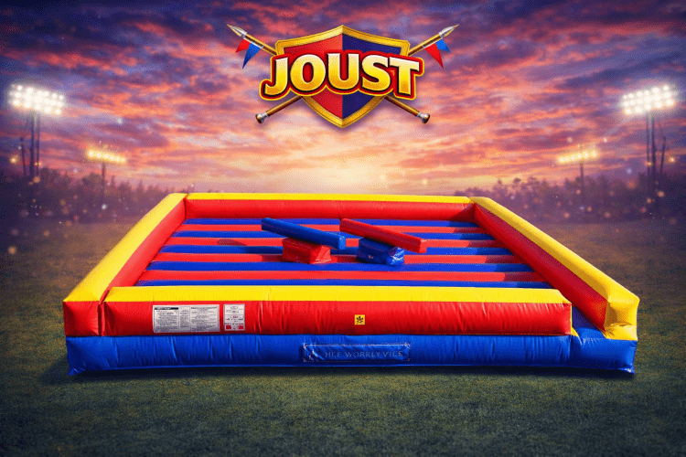 The Pedestal Joust features two elevated platforms where opponents stand, armed with soft, foam-padded jousting poles. The objective is simple: knock your opponent off their pedestal to claim victory! Safety is our priority, so the inflatable base provides a cushioned landing, ensuring a safe and enjoyable experience for everyone.With its vibrant colors and sturdy construction, the Pedestal Joust is a crowd-pleaser that draws attention and encourages friendly competition. Easy to set up and suitable for both indoor and outdoor use, this inflatable game is sure to be a hit at your event.Book the Pedestal Joust today and add a thrilling element to your gathering that guests will be talking about long after the event is over!