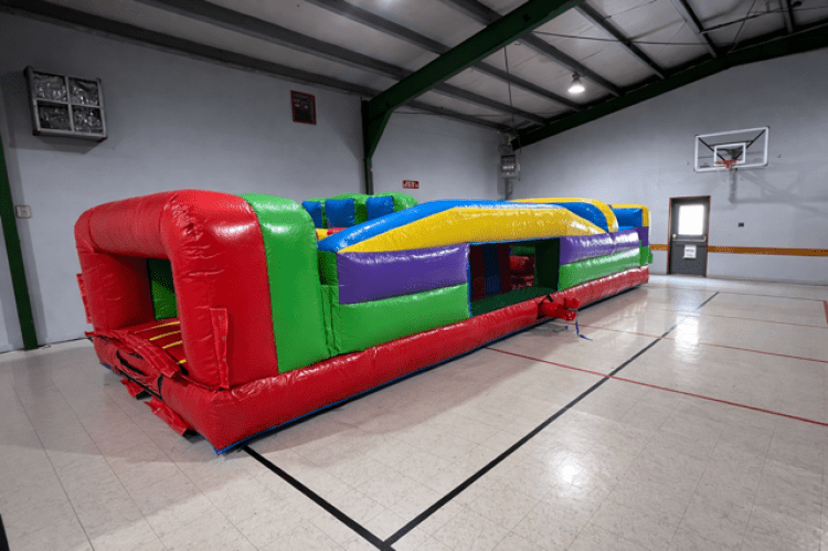 This colorful, compact obstacle course packs seven active elements into a 30' long by 11' wide by 7' high inflatable that’s built for non-stop, dry-play fun. Designed for backyard parties, school events, church functions, or indoor gym setups, it guides participants through a series of tunnels, staggered columns, pop-through pillars, and climb-over features before exiting through a final arch. Bright primary colors and low walls keep the course inviting and easy to supervise, while soft, inflated obstacles provide challenge without harsh impact.