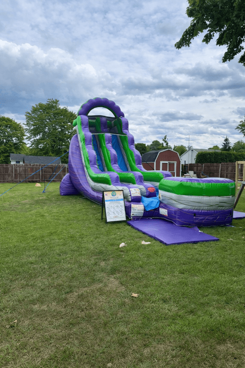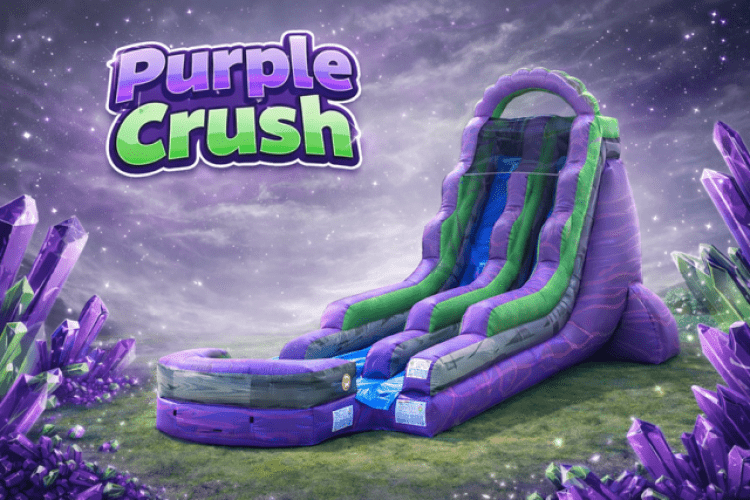 The 18' Purple Crush can be used both wet and dry, making it ideal for any season. In the warmer months, connect it to a water source for a refreshing splash as guests slide down. In cooler weather, enjoy it as a dry slide for equally thrilling fun.
